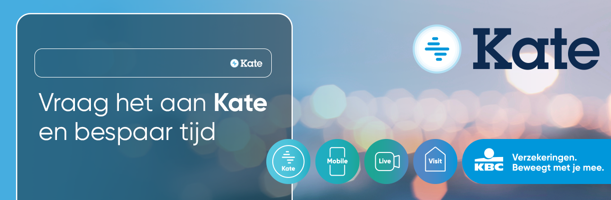 Kate is je digitale assistent die 24/7 voor je klaarstaat in KBC Mobile. Ze kan je snel helpen om je polis of verzekeringsbewijs te vinden, je verzekeringen te beheren, een nieuwe verzekering te simuleren en af te sluiten of online schade aan te geven. Voor meer complexe vragen of de afhandeling van een delicaat schadegeval kun je natuurlijk ook altijd rekenen op je vertrouwde verzekeringsagent.  Graag een afspraak met je agent? Dat kan gemakkelijk vanuit KBC Mobile.